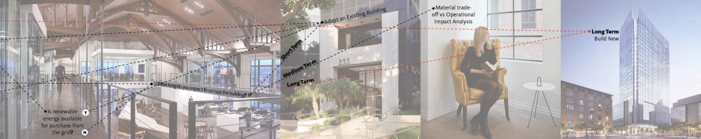 It is imperative that we develop strategies to improve the performance of our existing buildings without tearing them down. It takes approximately 20-30 years of a typical building’s operations to equate the same amount of energy usage required to create buildings from a materials and construction perspective, and upwards of 80 years for the additional energy of a high performing building to make up for the impact of having built it in the first place.