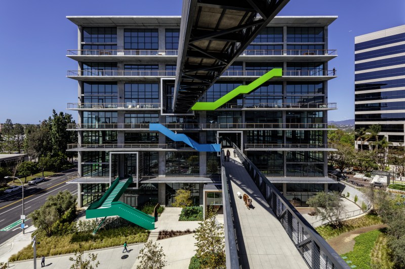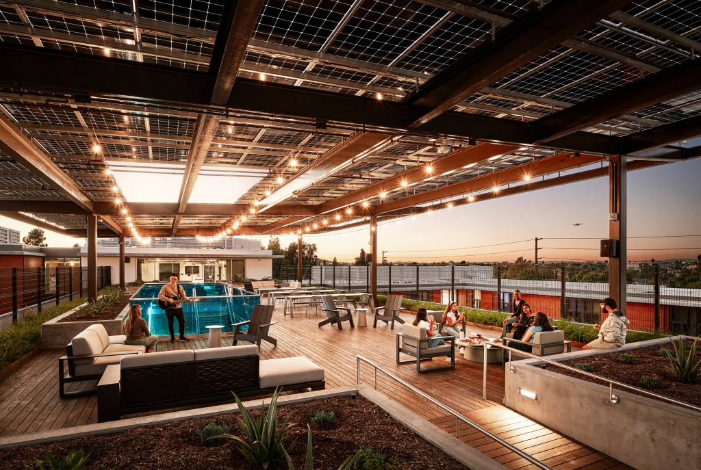 In a typical office building, glass walls are ineffective at keeping out the heat, even if the glass is triple-paned. But a roof with a large overhang can play an important role in keeping windows shaded. An “umbrella” roof can also helIn Los Angeles, the campus that Gensler designed for the Friendship Foundation uses an “umbrella” roof to add shade. [Photo: Gensler]p protect pedestrians walking outside.